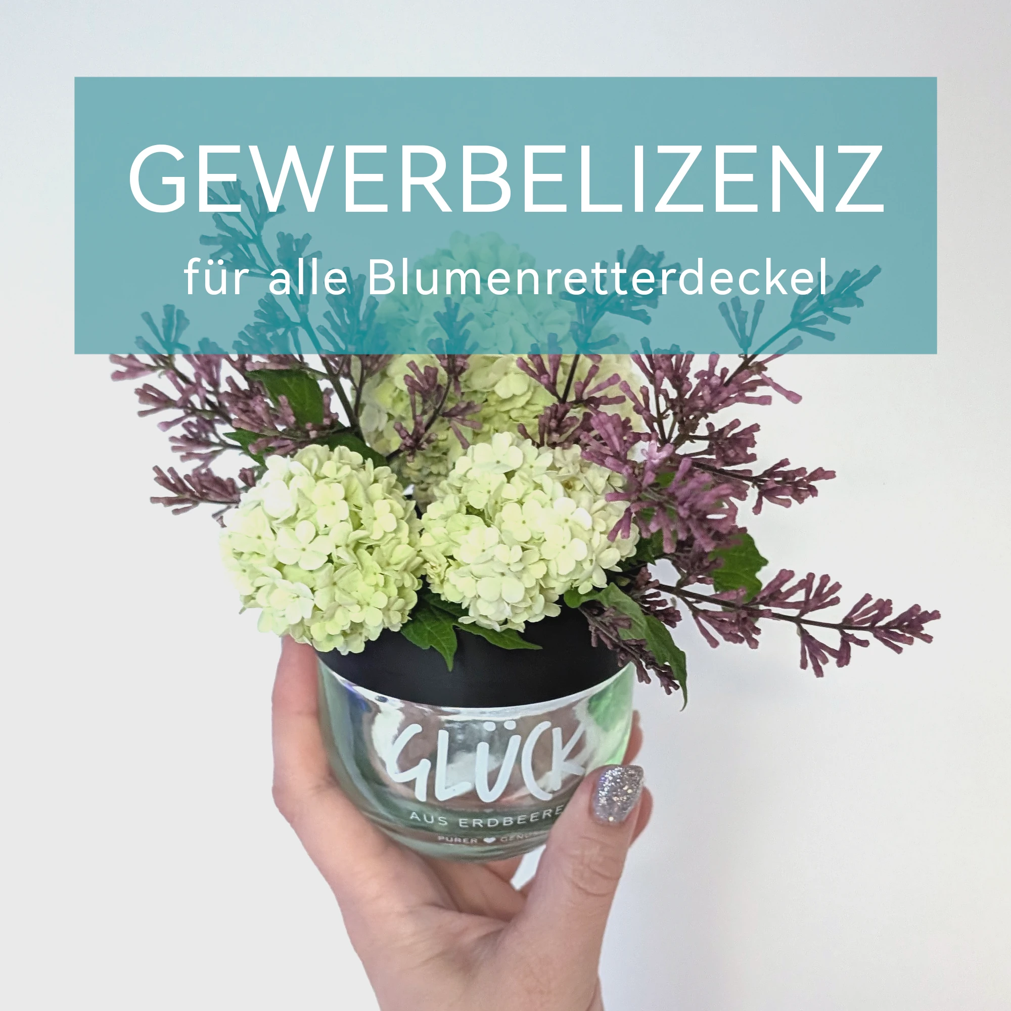 Diese unbefristete Gewerbelizenz umfasst alle derzeit verfügbaren sowie zukünftigen Blumenretter-Deckel für das Glücksglas. Sie erlaubt dir, deine gedruckten Deckel offiziell und dauerhaft zu verkaufen – ohne Laufzeit, ohne weitere Gebühren und immer in Verbindung mit deinem eigenen handwerklichen Können. Alle Varianten gehören hier zusammen und sind mit einer einzigen Lizenz abgedeckt.