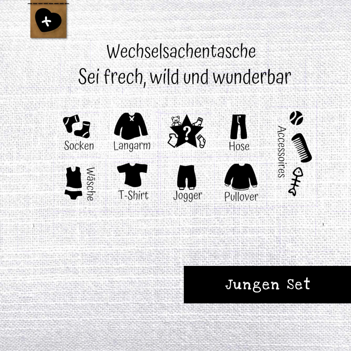 Das Wäscheset als Aufnäher, perfekt für die Kindergarten Wechselsachentasche ‚Max‘ ⮌