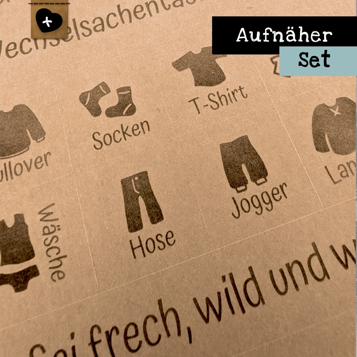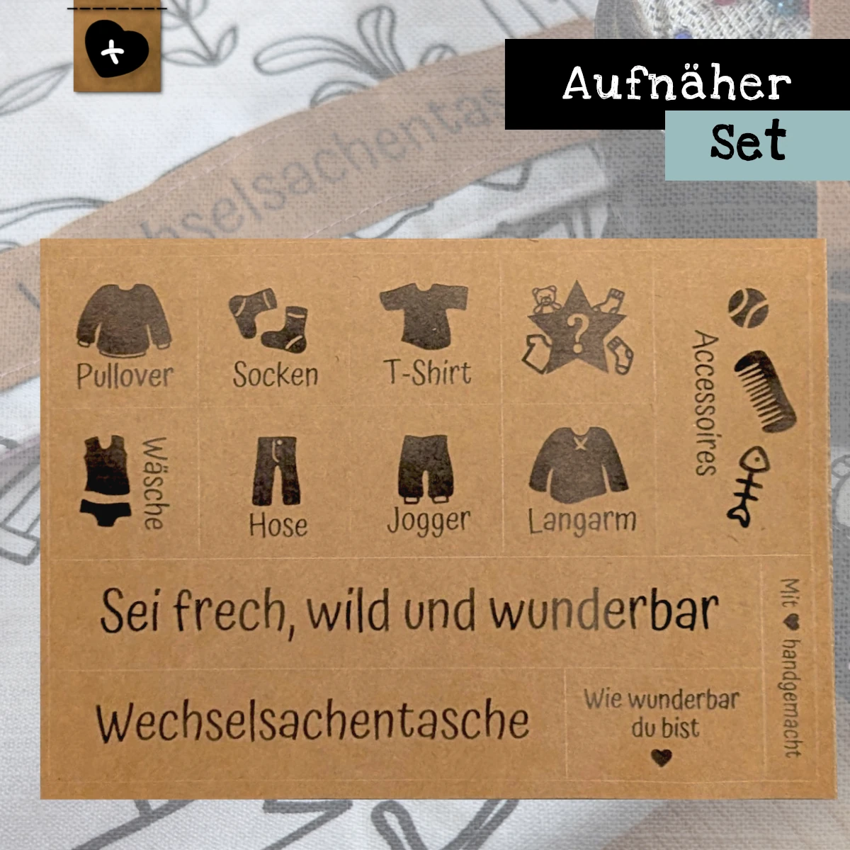 Aufnäher mit Text wie „Wechselsachentasche“ oder der inspirierende Spruch „Sei frech, wild und wunderbar“ setzen liebevolle Statements und bringen ein Lächeln in den Alltag.